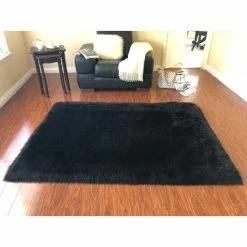 Wholesale 🌟 Silver Orchid Nansen Luxurious Faux Sheepskin Square Shape Shag Area Rug Black 🎁