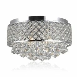 Best Pirce ⌛ Silver Orchid Jannings Chrome 3-Light Crystal And Metal Drum Shade Flush Mount 🌟