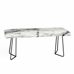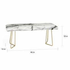 Add a decorative seating option to your home with this marble print bench. This bench is made of 100-percent high quality faux leather and is available with either black or gold legs. A modern marble design is featured on on the wrapped, faux-leather seat. This versatile piece works in any extravagant or casual setting.