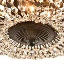 Illuminate your decor with the brilliant elegance of this flush-mount chandelier. Dazzling crystals scatter light to create a warm, glamorous glow, while the antique black finish balances the fixture for a sophisticated look in any space.