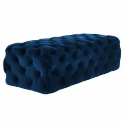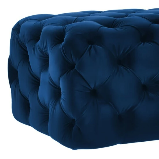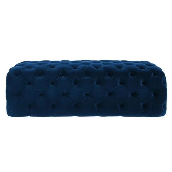 Plush, posh, and pretty, this ottoman offers a decadent accent as cozy and inviting as it is beautiful. Use it as an accent piece, a bench, or just a place to put your feet up after a long day. Its velvet upholstery and deep tufting make this ottoman a soft, relaxing place to sit.