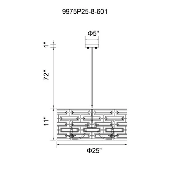 Dimensions: H 10′ x W 25′ x D 25′ – Chrome Finish – Requires 8 E12 Bulbs Max 60 W (Sold Seperately) – Comes with 72 ‘ of Rod – One year warranty against manufacturers defect.
