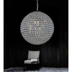 Dimensions: H 20′ x W 20′ x D 20′ – Chrome Finish – Requires 9 G9 Bulbs Max 40 W (Sold Seperately) – Comes with 72′ of chain – One year warranty against manufacturers defect.