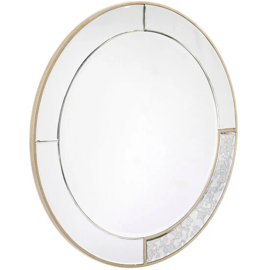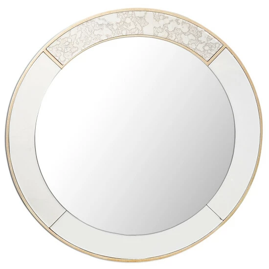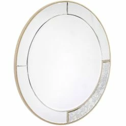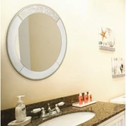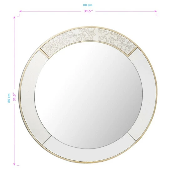 Provide more brightness in your living area when you hang this round mirror on an empty wall. An antique-silver frame with goldtone accents makes this ready-to-hang mirror extra elegant.