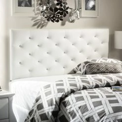 This delightfully striking, gracefully elegant headboard. Available with fabric or faux leather upholstery, the headboard features button tufting and clean lines, complementing any space with sophistication. High-quality foam fill and sturdy construction ensure comfortable support.