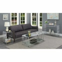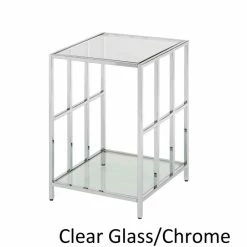 Decorate your home with this very appealing end table. Perfect for any room in your home, this table is made with durable tempered glass and is 2-tiered to provide plenty of storage and visual appeal. Beautifully designed with shelves crafted from clear tempered glass and a frame welded from metal, its sturdiness and easy maintenance is certain. It will not go unnoticed by your family or guests.