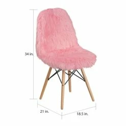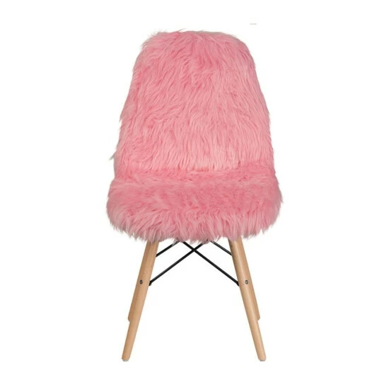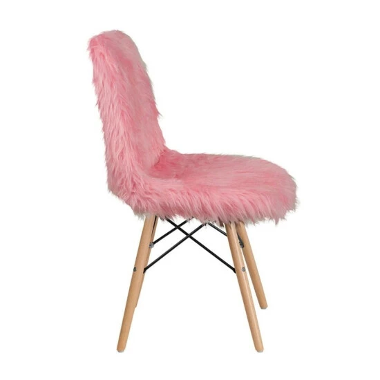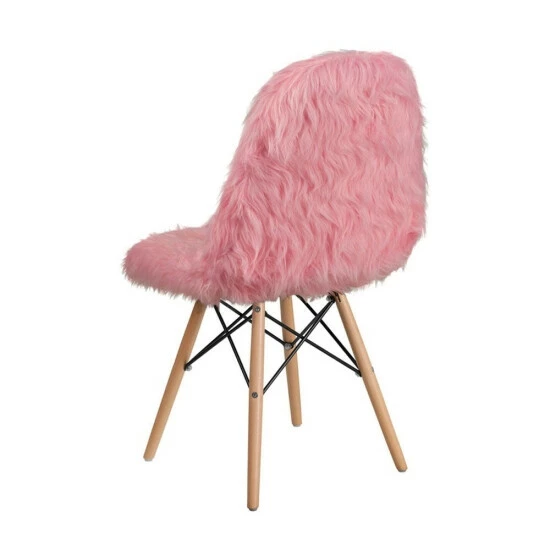 This fashionable contemporary chair has a retro appeal with a molded back and seat. This colorful chair will brighten your home or office decor. It features a cool to touch’ faux fur material with an attractive Beechwood base. Wooden legs feature a metal bracing for added support, as well as floor protector plastic glides to aid in moving the chair from room to room.