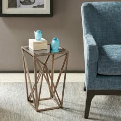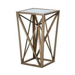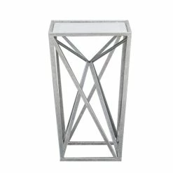 This unique accent table by Silver Orchid is just the thing to finish off the look of your living space. A faux silver leaf finish adds a touch of elegance to any space while the angular design lends a modern vibe to your decor. Place a cup of coffee or small decor items on the beveled mirror top, or add a lamp to create a cozy and stylish reading nook.Â