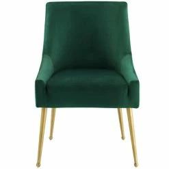 Upholstered with soft, stain-resistant velvet, this Silver Orchid dining chair offers glam style and durability. The recessed arms and foam-padded seat are paired with gold-finished stainless steel legs for modern shine and sturdy support. Choose from five upholstery colors to complement your existing decor.