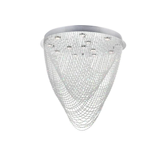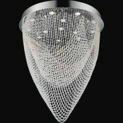 This breathtaking Round flush mount with draped crystal strands. With its sophisticated beauty and stunning details, it is sure to add the perfect touch to your decor. – Dimensions: H 32′ x W 32′ x D 32′ – Chrome Finish – Requires 13 GU10 Bulbs Max 35 W (Sold Seperately) – Crystal Style – One year warranty against manufacturers defect.