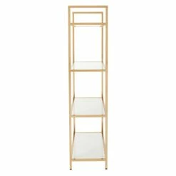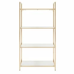 Display your favorite sculptures, books, or decor pieces with this chic bookshelf from Silver Orchid. The goldtone frame is complemented by glossy white shelves for a classy, upscale look that works well in a variety of settings. Pair this piece with white or gold furniture for a sleek, coordinated look.