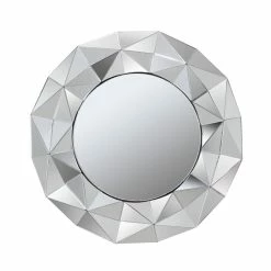 Truly capture the gaze with this silver wall mirror, featuring a round contemporary style frame with origami-like folds. This gorgeous, eye-catching mirror lends itself nicely to an entry foyer or above a bedroom dresser.