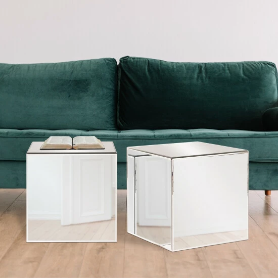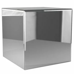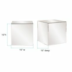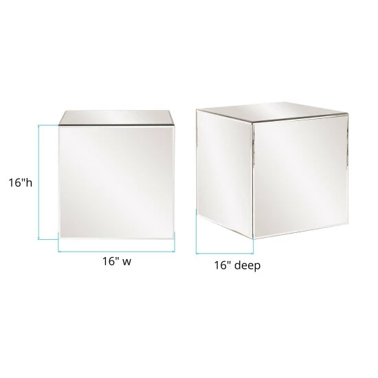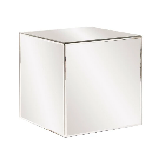 Update your home with this decorative cube table. This decorative piece features a lovely silver color and is made of glass. The sapphire silver mirrored panels reflect light while providing a chic display, and the beveled edges lend simple style.