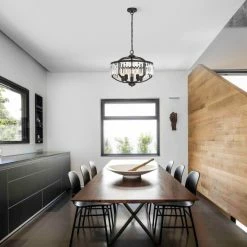 Brighten up your home with this 5 light hanging pendant. This pendant has a lovely oil rubbed bronze finish with crystal glass accents.The clean lines of the steel frame add interest and complement many glam and transitional decors.
