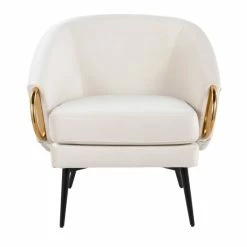 Chic modern style shines bright with the unique design of the Battista Accent Chair. With a wide rounded backrest, sleek gold armrests, and a black metal frame, it’s the perfect piece for your contemporary living area. The Battista Accent Chair is upholstered in lush velvet and available in various bold colors.
