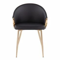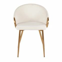 Provide a comfortable seating option with this glamorous chair. This contemporary is built on a durable golden frame and features a padded seat and backrest to provide you with plenty of comfort and padding. Highlight your dramatic style with the velvet or faux leather upholstery. You can use this chair as a dining or accent chair.