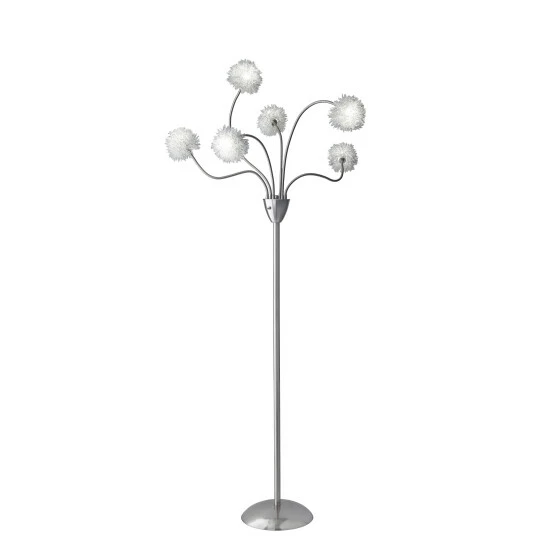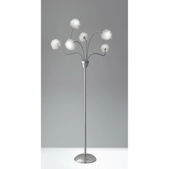 Embolden your glam decor with the Belasco brushed-steel floor lamp. The adjustable arms display six pompom shades, made from aluminum paperclips for modern shine. Two-watt LED bulbs are included for energy-efficient illumination.