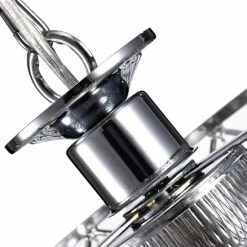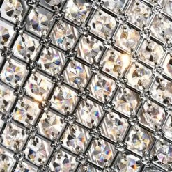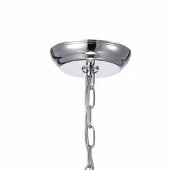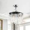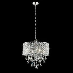 Delight in the dazzling beauty of this 4-light round chandelier from Silver Orchid. This radiant light fixture showcases a chrome-finished metal construction emblazoned with shimmering faceted crystals throughout the round shade and dangling below.