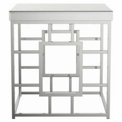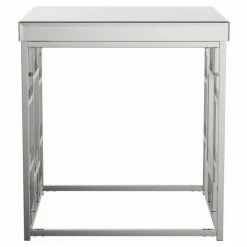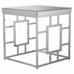 Liven up your space with this modern end table. This end table has a modern style with a mirrored top. The metal frame is electroplated in a shiny chrome finish for the that adds plenty of finesse and elegance.