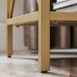 Complement your bedroom’s upscale look with this glam nightstand. The goldtone frame provides a distinct style, while the wood drawer and lower shelf offer a contrasting, mixed materials look. Whether used as a nightstand or side table, this piece looks fantastic in any setting.