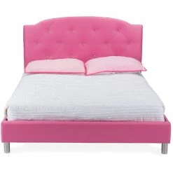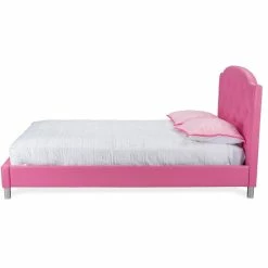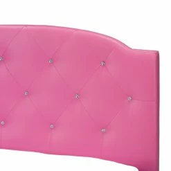 Bring contemporary style to your room with this gorgeous Bird bed from Silver Orchid. Made from hardwood and plywood, and upholstered in faux leather upholstery with a pink color, the beautiful bed is designed to be used without the need for a box spring. The camelback headboard features crystal tufting and stitched diamond detailing for a look that complements the upholstered base, and completes the timeless comfort of this lovely bed.