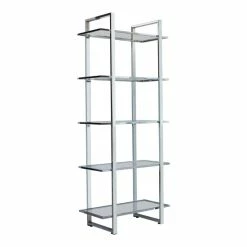 Create a well styled living space that radiates modern luxury. This contemporary bookcase delivers sleek lines of metal in your choice of gorgeous, polished finishes. The shelves are made with tempered glass for smooth, sturdy support. With five shelves total, it offers ample space to display photos, keepsakes, and more. Perfect for a living room, home office, or den, this fresh, modern bookcase is a fabulous choice for any home.