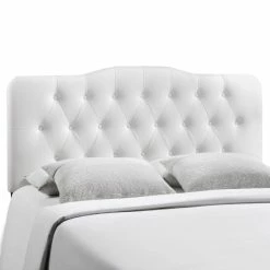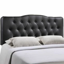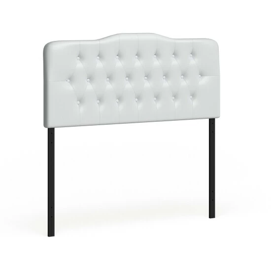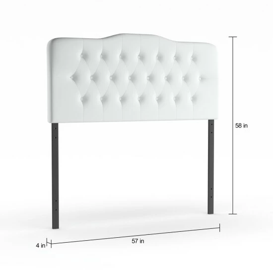 Modernize the ambiance of your bedroom with this classic Bow headboard from Silver Orchid. The subtly arched headboard is made from sturdy MDF, LVL, and plywood with polyurethane vinyl upholstery available in white or black. The adjustable headboard features elongated diamond stitching and deep button tufting, and comes in full size, making this charming piece the perfect finishing touch to your room.