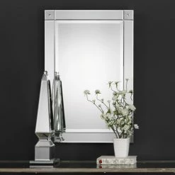Sleek, simple, and sophisticated, this mirror adds a touch of gleam to your walls. Beveled edges and convex details at the corners lend dimension and texture to the mirror, and the abundant surface creates the illusion of more space in your home.