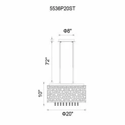 Dimensions: H 12′ x W 20′ x D 20′ – Chrome Finish – Requires 7 G9 Bulbs Max 40 W (Sold Seperately) – Comes with 72′ of rod – One year warranty against manufacturers defect.