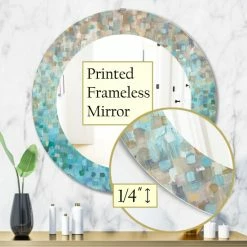 A true work of art gleams forth in the form of this ‘blocked abstract’ mirror. Graceful glass provides a crystal clear, distortion-free reflection to naturally open up the look of your space. An alluring and enchanting frame painted with an abstract block pattern in shades of blue brings some sweet serenity to your decor.