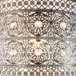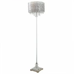 Bring chic and romantic light to your home with the balanced design of this floor lamp. Crafted of metal medallion circular design with clear faceted K-9 crystals, this is a piece that is sure to stand out wherever placed. The lamp showcases a square polished nickel base with a medallion pattern for a touch of glamorous allure sure to be welcome in any space.