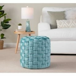 The perfect and functional addition to any space, the Camilla Braided Round Ottoman is available in a variety of great colors. With sleek velvet upholstery, this piece is ideal for any room and can be used for casual seating, a footrest, or as a decorative accent.