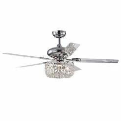 Update your home in glamorous style with this magnificent and functional ceiling fan. The three-speed reversible motor insures you find just the right amount of airflow, and this fan comes with your choice of  pull chains or a remote control. The included light kit is adorned with bright crystals that add charm and grace to your space.Â