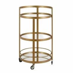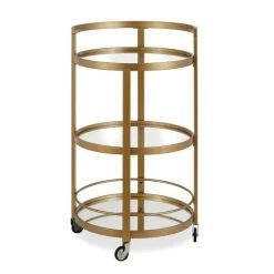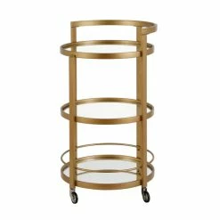 ? Premium materials have been used in making this bar cart: tempered mirrored glass throughout the table top and shelves, while a steel frame provides a sleek design and a sturdy base.