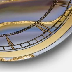 Tell time in a colorful and stylish way with this oversized wall clock. Available in several sizes and many colors, this click is made with 100-percent solid aluminum and has a glossy finish that will provide a glistening modern look. This clock has a stunning and captivating print in the glossy finish of the metal.