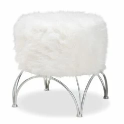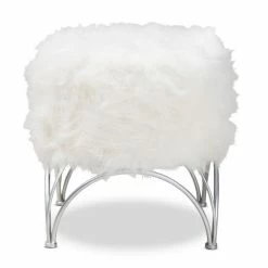 Kick your feet up and relax by adding this beautiful modern and contemporary upholstered ottoman. This ottoman is upholstered in faux fur polyester fabric and padded with foam.ย Crafted from iron with a geometric base in silver finish, this ottoman is built to last and will be a mainstay in your home for years to come.