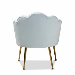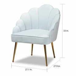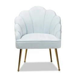 Sit in comfort and style with this seashell shaped accent chair. This chair is made with plywood and stainless steel. It is upholstered in velvet polyester fabric and padded with foam. Channel tufting gives the chair an extravagant look, and angled legs provide attractive appeal.