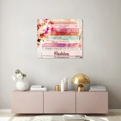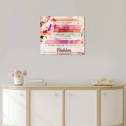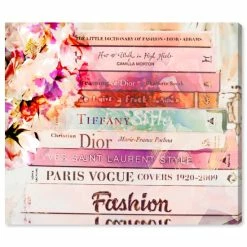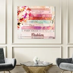 Perfect for fans of high fashion, this canvas print features a stack of fashion-related books and catalogs in ravishing pink tones. Pair with a print of Audrey Hepburn and Tiffany-style light shades to finish off the haute design of your space.Â