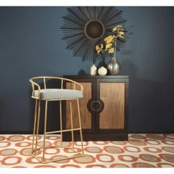 Positively modern and wonderfully glam, this stool is sure to enrich and enliven any space you put it in. Artful geometric lines and a gold finish deliver retro flair for a distinctive accent, and your choice of upholstery texture and color makes for perfectly pairing this stool with existing decor.