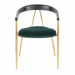 Add a little glamour to your dining room with the chic design of the Chair. This dramatic chair is dressed to impress in a sleek velvet upholstery, metal frame with a gold finish and accented with a black wood backrest. Available in a variety of gorgeous velvet upholstery colors, choose the one that fits your space the best.