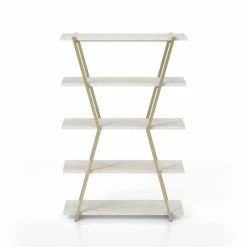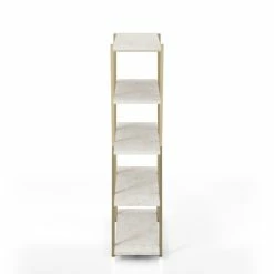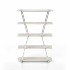The geometric style of this bookcase is the perfect layout to display your favorite things. With a sturdy and sleek metal frame and light colored wood shelving this bookcase looks great in just about any space.