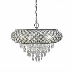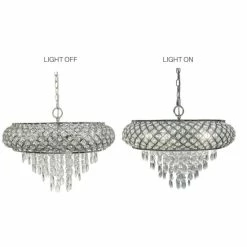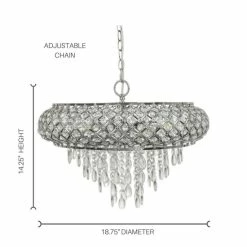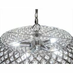 This Erlanger hanging chandelier from Silver Orchid offers the ultimate in decadent design and sophisticated style. Over 575 crystal accent pieces fit within the chrome-finish frame and hang in rows from the frame in tiered chandelier rows for a luxuriously glamorous look.