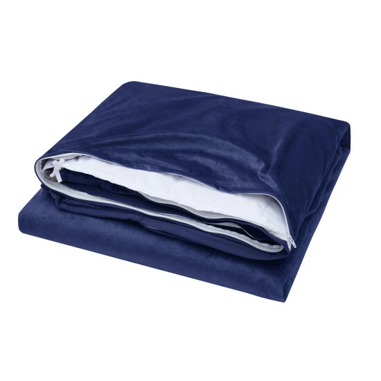 Weighted blankets provide a swaddling feeling bringing a sense of serenity.These blankets have a wide range of uses and benefit for your well being. The removable cover for the blanket is helpful for washing and fabric care.The blanket cover has velvet face with a microfiber reverse.