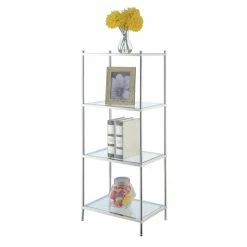 Display your favorite decorations with the contemporary elegance of this Farrar tower from Silver Orchid. The 4-tier tower features a metal frame with a sleek chrome finish and ball finials, and supports clear glass shelves. Perfect for displaying your favorite decorative items, this 4-tier tower will enhance the modern appeal of your home.