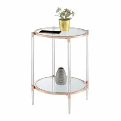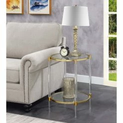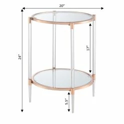 Upgrade your living space to luxury and glam with the Silver Orchid Farrar Acrylic Glass End Table. Featuring four acrylic legs that support two gold chrome metal frames and two tiers of tempered glass shelves. Great for entertaining, the spacious tabletop gives you and your guests plenty of table space to place beverages and more. Additional space is available on the 2nd tier of this extravagant end table to showcase your glamorous decorative items. This classy end table is quick to assemble with only 3 easy steps required.