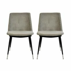 Lend a vogue, mid-century flair to your dining room with this set of two side chairs. Upholstered in soft grey velvet with a contoured back, these chairs are comfortable and supportive. Pair these chairs with black, grey, or silver decor for a modern aesthetic with a touch of retro glamour.
