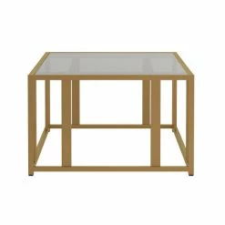 Create a well-styled living room that brims with modern appeal. This contemporary coffee table flaunts a unique design that stands out in any space. The base is beautifully crafted with crisp, clean lines of electroplated metal. A magnificent, matte brass finish adds an edge of elegant allure. The rectangular tabletop is made of clear tempered glass for exceptional quality and style.
