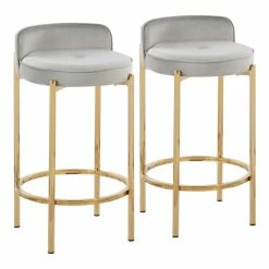 Add a dash of glam to your dining space with the Flohr Counter Stool by Silver Orchid. With a rich upholstered seat and backrest, stylish tufting, and plush padding, the Flohr is accented by a luminous gold or chrome metal base. Available in a variety of colors, choose the one that fits your glam area the best!