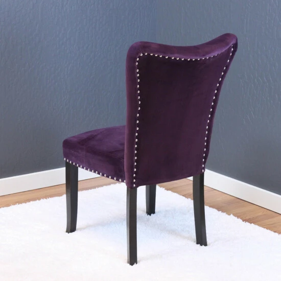Bring plenty of appeal and flair into your home with these lovely dining chairs. Coming in a set of two, these chairs are made with extremely comfortable Dutch velvet material and constructed with espresso finished wooden legs that will provide plenty of durability. Coming in a wonderful assortment of colors with chrome nailhead trimming, you can’t go wrong by adding this piece to your home.
