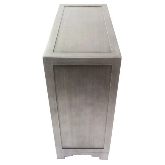 - Brushed nickel finish on metallic drawer pulls